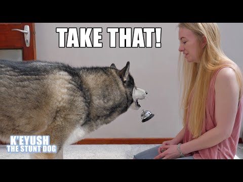 Ring The Bell For a Treat? My Husky THROWS it At ME! Key is weirdly worried about sounds that ping like a text message so I'm using a bell and rewards to desensitise him to the sound, and in the process he trained me to give him food when he hits a bell! Teespring Merchandise: